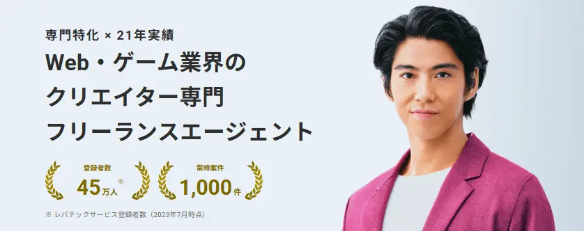 Web・ゲーム業界に特化したクリエイター専門エージェント「レバテッククリエイター」。業界最大級の登録者数を誇り、豊富な人材データベースから自社のプロジェクトにマッチする人材を探せます。