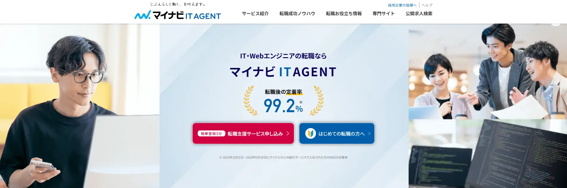 大手人材会社のマイナビグループが運営するIT・Webエンジニア特化型のエージェント「マイナビIT AGENT」。長年の人材紹介事業で培われた全国規模のネットワークと豊富な求職者データベースに強みがあります。