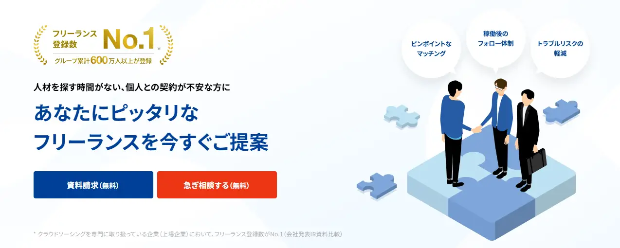 また、業界知識が豊富なコーディネーターによる手厚いサポート体制も魅力です。スキルセットからカルチャーフィットまで考慮した人材を提案してくれるため、初めての業務委託でサポート力を重視したい企業にもおすすめです。