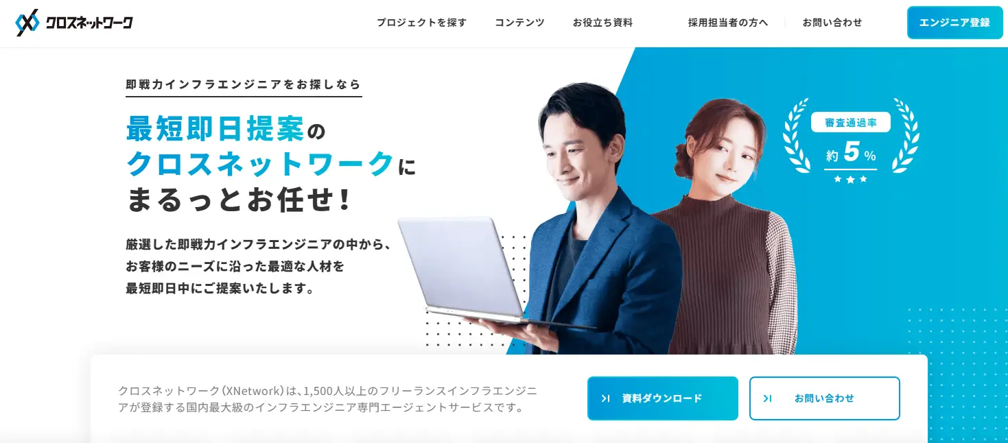また、人材のミスマッチを防ぐためには、プロジェクトの目的や求めるスキルセットを明確に伝える必要があります。とくにインフラ構築のスキルに優れたエンジニアを確保するなら、インフラエンジニアの専門職エージェント「クロスネットワーク」がおすすめです。